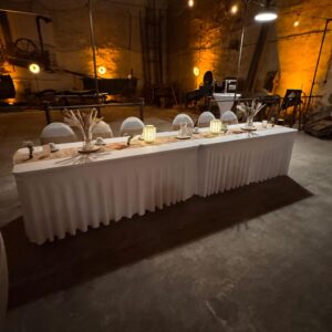 Stretch Tischdecke gerafft für Tisch eckig 180cm inkl. Reinigung