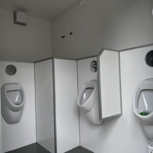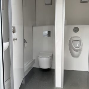 Unser hochwertiger Toilettenwagen bietet eine komfortable und hygienische Sanitärlösung für Veranstaltungen jeder Art. Der Wagen ist in zwei separate Bereiche für Damen und Herren unterteilt und überzeugt durch durchdachte Ausstattung und modernes Design.